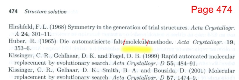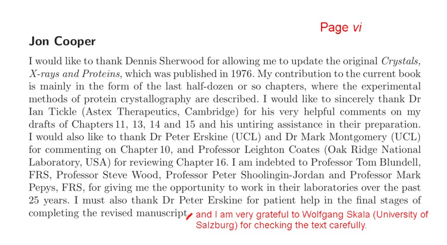 p. 616, add "Rupp, B. Biomolecular Crystallography: Principles, Practice, and Application to Structural Biology. Garland Science, New York, 2009." to 'Reference works' above 'Sanderson, M.R....'.