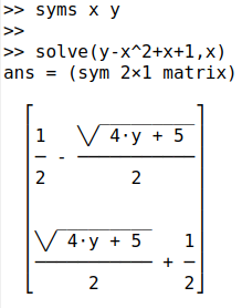 Rearranging equations can also be done using the solve method. For example with the below quadratic equation for y as a function of x: